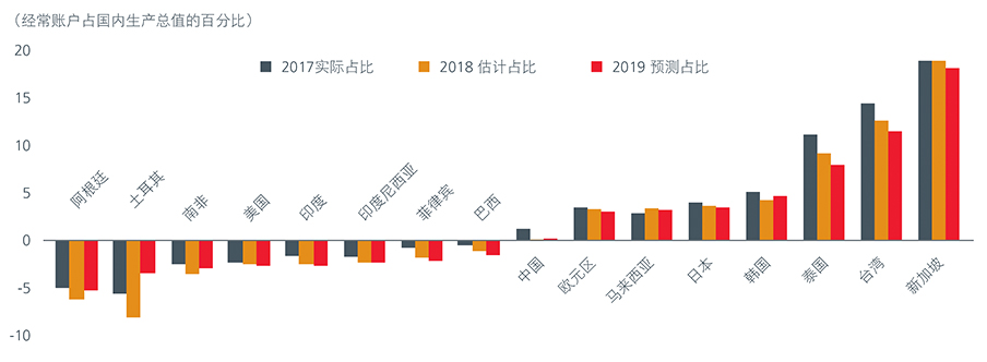 再例如,南非、印度、印度尼西亚和菲律宾的赤字率大致相当(菲律宾预测到2019年还要恶化),但他们的货币贬值速度却有所不同。2017年9月里拉开始贬值后,南非兰特的贬值率约为18%,印度卢比和印尼盾分别贬值12%和13%,而菲律宾比索仅贬值5%。