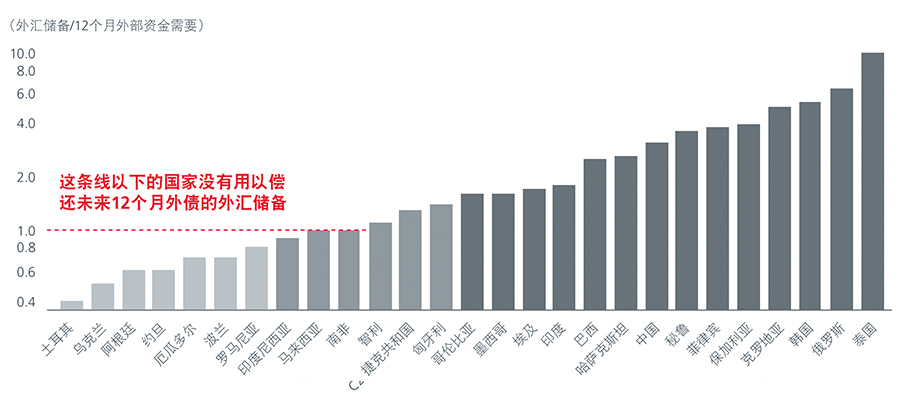 这条线以下的国家没有用以偿还未来12个月外债的外汇储备
