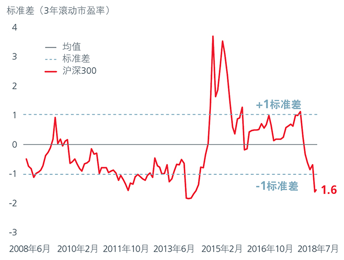 我们可以看到,新的MSCI与沪深300指数成分公司相似,以12个月预期收益10.4倍的价格交易7,从历史标准(见图表3)来看,这是很诱人的。