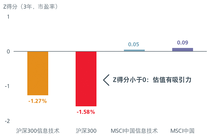 从历史角度看,例如,沪深300信息技术目前的交易价低于其长期平均价超过一个标准差(见图表5)。